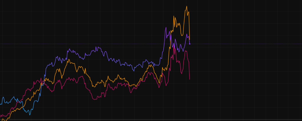 Die Grafik zeigt deutlich, wie sich diese drei Paare phasenweise voneinander entfernen, aber regelmäßig wieder zueinander zurückkehren. Genau diese Abweichungen und Rückläufe sind es, die der Bot systematisch ausnutzt – mit antizyklischen Entries in überdehnten Marktphasen und klar definierten Liquiditätszonen.