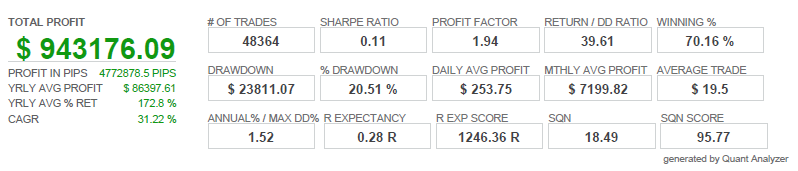 Trotz dieser starken Zahlen sollte man realistisch bleiben: Backtests bilden nicht die vollständige Realität ab. Deshalb kalkulieren wir bewusst mit 10 % höherem Drawdown und 5 % niedrigerem Gewinn, um den Erwartungen in Live-Märkten gerecht zu werden.